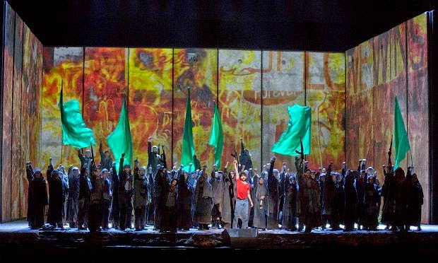 John Adams and Alice Goodman, The Death of Klinghoffer. Metropolitan Opera, 10/20/2014 (new production premiere). Conducted by David Robertson, production by Tom Morris with sets by Tom Pye, costumes by Laura Hopkins, lighting by Jean Kalman, video by Finn Ross, sound by Mark Grey and choreography by Arthur Pita. Wit Paulo Szot (Captain), Alan Opie (Klinghoffer), Michaela Martens (Marilyn Klinghoffer), sean Panikkar (Molqi), Aubrey Allicock (Mamoud), Jess Kovarsky (Omar), Ryan Speedo Green (“Rambo”), Maya Lahyani (Palestinian Woman)