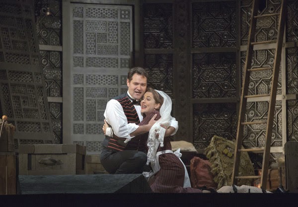 Pretty Yende is as charming as her name suggests and her voice is sweet and has a unique color. This wasn’t the best vehicle for her talents. The tiny introduction demands she set a strong mood right away and she didn’t, really. Technically, it wasn’t quite there, with some flatness in the high notes and more elaborate ornamentation in second verse of the cabaletta than she could carry off.